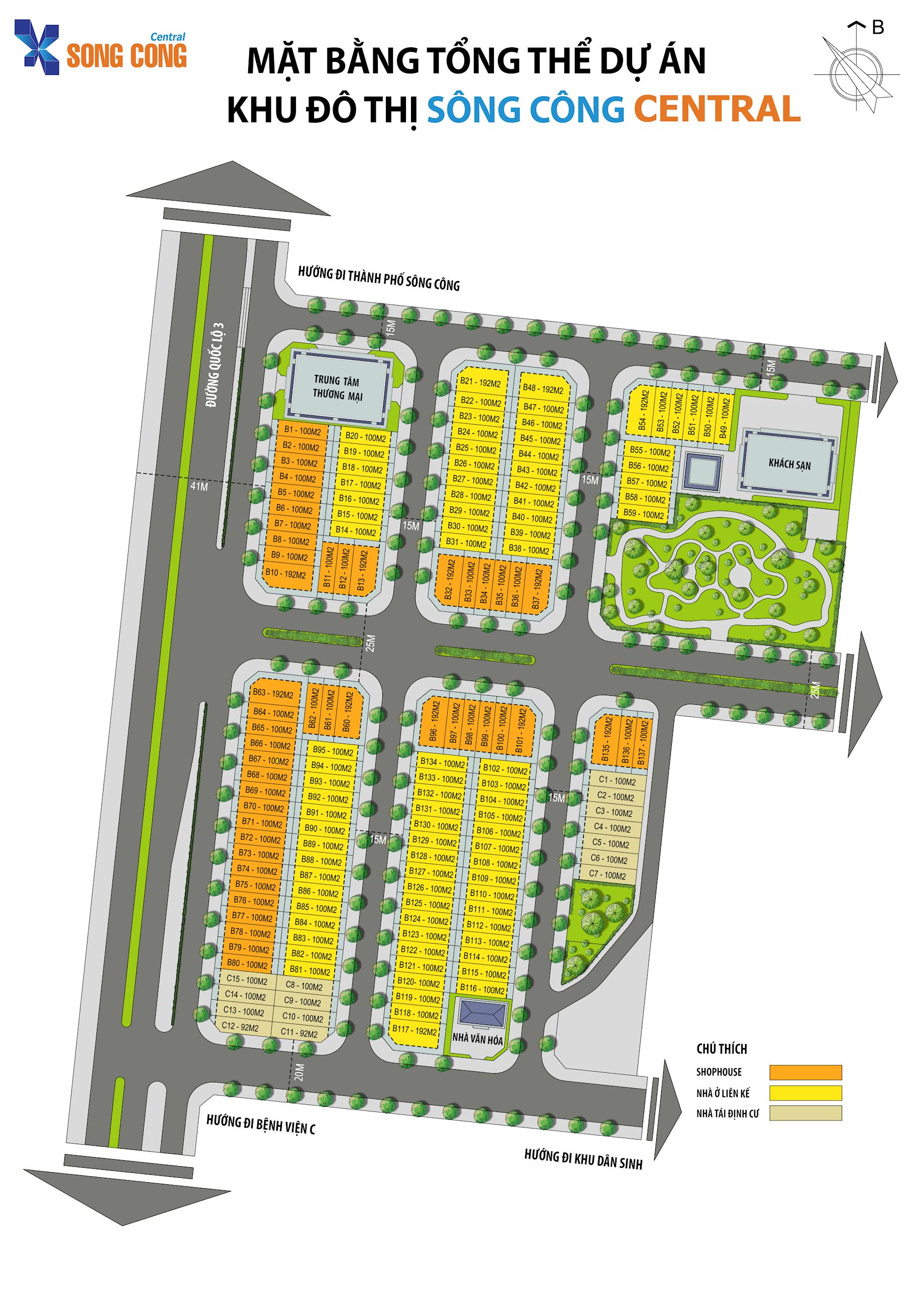 Khu đô thị Song Cong Central tái hiện cuộc sống gần gũi, giao hòa với thiên nhiên mà không xa rời cuộc sống tiện nghi, hiện đại. Dự án được thiết kế độc đáo, ôm trọn công viên cây xanh rộng lớn, tạo không khí trong lành cho toàn khu đô thị.